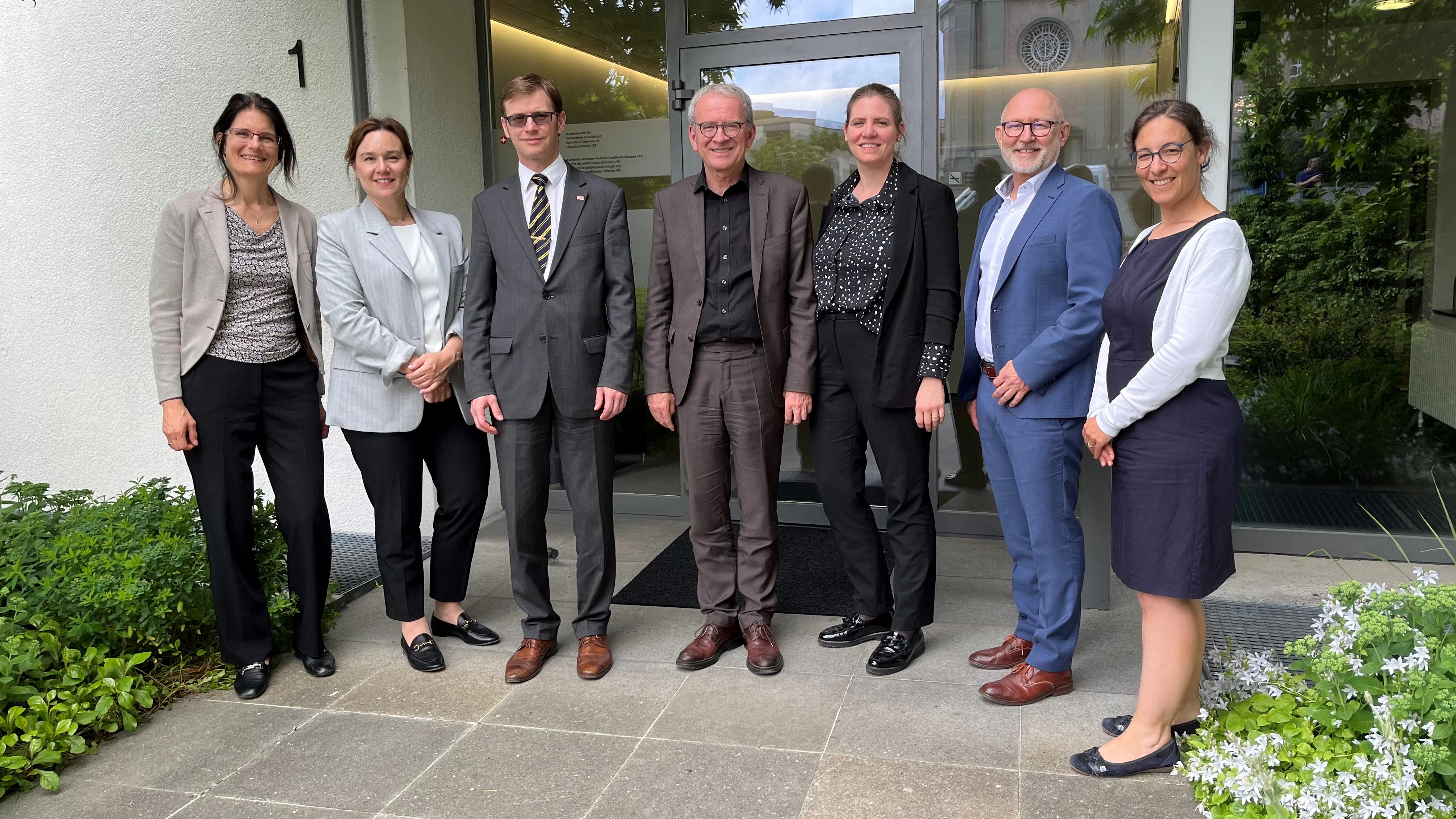 Da sinistra a destra: Caroline Gloor Scheidegger, responsabile degli Affari internazionali dell'IFPDT; Elisabeth Wagner, supplente dell'Autorità per la protezione dei dati personali AT; Matthias Schmidl, capo dell'Autorità per la protezione dei dati personali AT; Adrian Lobsiger, IFPDT, Florence Henguely, supplente dell'IFPDT; Reto Ammann, capo della Divisione Libertà d'informazione dell'IFPDT; Catherine Lennman, Divisione Affari internazionali dell'IFPDT.